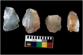 | Description / विवरण | There are n 4 ; worked utilized flakes; there are multidirectional irregular scar pattern on both dorsal and ventral face of the flakes. All are having sharp edges. |