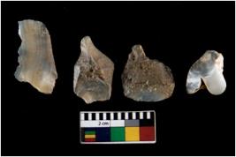 | Description / विवरण | There are n 4 ; worked utilized flakes; there are multidirectional irregular scar pattern on both dorsal and ventral face of the flakes. All are having sharp edges. |