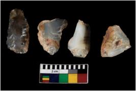 | Description / विवरण | There are n 4 ; worked utilized flakes; there are multidirectional irregular scar pattern on both dorsal and ventral face of the flakes. All are having sharp edges. |