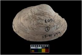 | Description / विवरण | Specimen of a large bivalve marine shell with ground edge. |