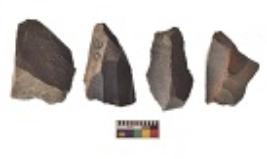 | Description / विवरण | There are n 4 utilized flakes. There are multi directional irregular scar pattern on both dorsal and ventral face of the flakes. Two are tapering at one end and two have blunted edges. |
