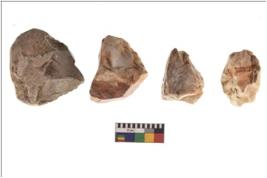 | Description / विवरण | There are n 4 flake cores. All of them are fully fluted flake cores without any trace of crested ridge flakes. Some are tapering at one end. Few have flat base whereas some have blunted edges. |