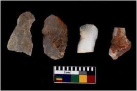 | Description / विवरण | Specimen of a cores with several broad fluted marks, the reverse bulb and platform can be seen. |