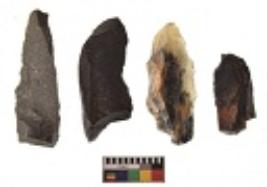 | Description / विवरण | There are n 4 utilized flakes. There are multi directional irregular scar pattern on both dorsal and ventral face of the flakes. Two are tapering at one end and two have sharp edges. |
