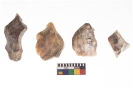 | Description / विवरण | There are n 4 of utilized worked cores and show irregular scar pattern on both dorsal and ventral side. Three are tapering at one end. |