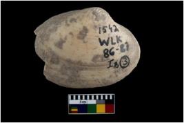 | Description / विवरण | Specimen of a large bivalve marine shell with ground edge. Probably used as spoon. |