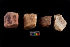 | Description / विवरण | Specimen of a cores with several broad fluted marks and some of them are tapering at one end. |