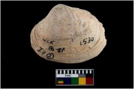 | Description / विवरण | Specimen of a large bivalve marine shell with ground edge. Probably used as spoon. |