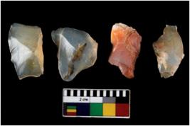 | Description / विवरण | There are n 4 ; worked utilized flakes; there are multidirectional irregular scar pattern on both dorsal and ventral face of the flakes. All are having sharp edges. |