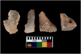 | Description / विवरण | There are n 4 utilized flake cores. There are multi directional irregular scar pattern on them. All of them are tapering at one end. |