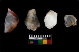 | Description / विवरण | There are n 4 ; worked utilized flakes; there are multidirectional irregular scar pattern on both dorsal and ventral face of the flakes. All are having sharp edges. |