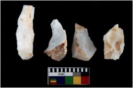| Description / विवरण | There are n 4 utilized flake cores. There are multi directional irregular scar pattern on them. All of them are tapering at one end. |