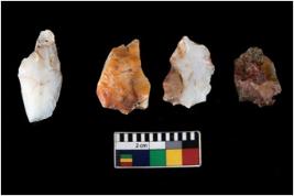 | Description / विवरण | There are n 4 ; worked utilized flakes; there are multidirectional irregular scar pattern on both dorsal and ventral face of the flakes. All are having sharp edges. |