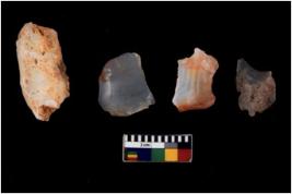 | Description / विवरण | There are n 4 cores; there are multi directional irregular scar pattern on them. Some of them are tapering at one end. 1 quartz, 1 chalcedony and 2 chert |