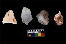 | Description / विवरण | There are n-04 cores and show irregular scar pattern on both dorsal and ventral sides. They have a broken tip. |