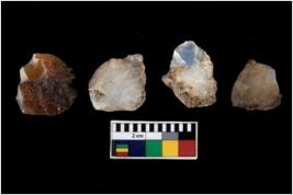 | Description / विवरण | There are n 4 ; worked utilized flakes; there are multidirectional irregular scar pattern on both dorsal and ventral face of the flakes. All are having sharp edges. |