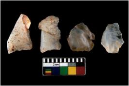 | Description / विवरण | There are n 4 ; worked utilized flakes; there are multidirectional irregular scar pattern on both dorsal and ventral face of the flakes. All are having sharp edges. |