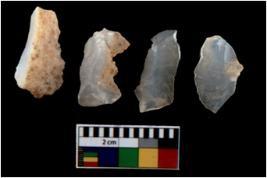 | Description / विवरण | There are n 4 utilized flake cores. There are multi directional irregular scar pattern on them. All of them are tapering at one end. |