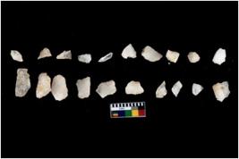 | Description / विवरण | There are n 20 flakes; there are multidirectional irregular scar pattern on them; made of short flakes, few are blades, one has pen pointed edge and few have tapering edges. |