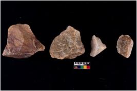 | Description / विवरण | Specimen of a cores with several broad fluted marks and some of them are tapering at one end. |