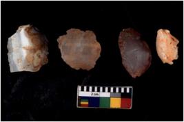 | Description / विवरण | There are n 4 cores; there are multi directional irregular scar pattern on them. Some of them are tapering at one end. 2 chalcedony and 2 chert |
