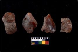 | Description / विवरण | There are n 4 of utilized worked cores and show multidirectional irregular scar pattern on both dorsal and ventral sides. |