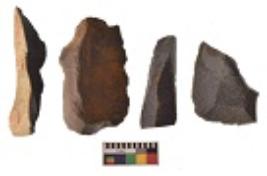 | Description / विवरण | There are n 4 utilized flakes. There are multi directional irregular scar pattern on both dorsal and ventral face of the flakes. Two are tapering at one end and two have sharp edges. |