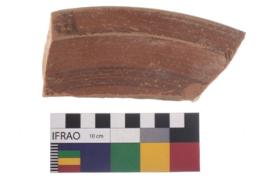 | Description / विवरण | Specimen of black on red ware with traces of decorative geometric Six parallel lines painting. |