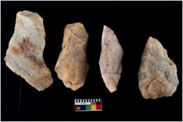 | Description / विवरण | Specimen of a cores with several broad fluted marks and some of them are tapering at one end. |