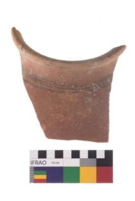 | Description / विवरण | Specimen of black on red ware with traces of decorative geometric Four parallel lines painting. |