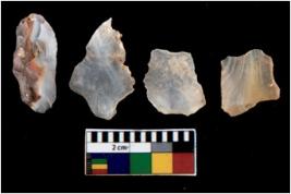 | Description / विवरण | There are n 4 utilized flake cores. There are multi directional irregular scar pattern on them. Two are tapering at one end and two have blunted edges. |