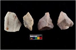| Description / विवरण | Specimen of a cores with several broad fluted marks and some of them are tapering at one end. |