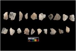 | Description / विवरण | There are n 20 flakes; there are multidirectional irregular scar pattern on them; made of short flakes, few are blades, one has pen pointed edge and few have tapering edges. |
