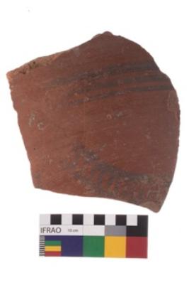 | Description / विवरण | Specimen of black on red ware with decorative geometric Three parallel lines and two curved lines between strokes painting. |