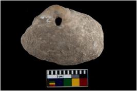 | Description / विवरण | Specimen of a large perforated bivalve marine shell with sharp edge. |