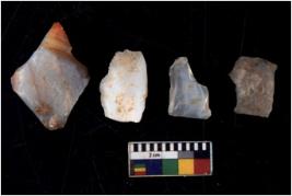 | Description / विवरण | There are n 4 of utilized worked cores and show multidirectional irregular scar pattern on both dorsal and ventral sides. Two are tapering at one end. |