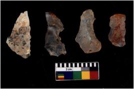 | Description / विवरण | There are n 4 flakes tool; there are flakes with sides trimmed, Marks of secondary flaking are present on the both the faces. |