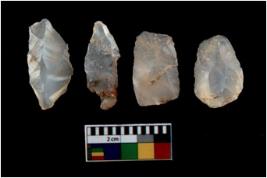 | Description / विवरण | There are n 4 utilized flake cores. There are multi directional irregular scar pattern on them. All of them are tapering at one end. |