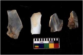 | Description / विवरण | There are n 4 flakes tool; there are flakes with sides trimmed, Marks of secondary flaking are present on the both the faces. |