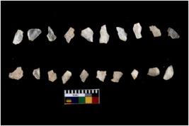 | Description / विवरण | There are n 20 flakes; there are multidirectional irregular scar pattern on them; made of short flakes, few are blades, three has pen pointed edge and few have tapering edges. |