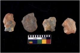 | Description / विवरण | There are n 4 of utilized worked cores and show multidirectional irregular scar pattern on both dorsal and ventral sides. |