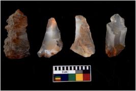 | Description / विवरण | There are n 4 flakes tool; there are flakes with sides trimmed, Marks of secondary flaking are present on the both the faces.The dorsal is relatively flat. |