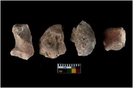 | Description / विवरण | There are n 4 of utilized worked cores and show irregular scar pattern. Two have a broken tip. |