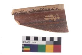 | Description / विवरण | Specimen of black on red ware with traces of decorative geometric Three parallel lines painting. |