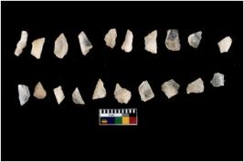 | Description / विवरण | There are n 20 flakes; there are multidirectional irregular scar pattern on them; made of short flakes, few are blades, one has pen pointed edge and few have tapering edges. |