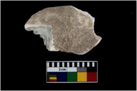 | Description / विवरण | Fragment of a bivalve marine shell with irregular shape. |