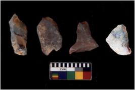 | Description / विवरण | There are n 4 of utilized worked cores and show multidirectional irregular scar pattern on both dorsal and ventral sides. They are tapering at one end. |