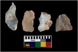 | Description / विवरण | There are n 4 utilized flake cores. There are multi directional irregular scar pattern on them. One has sharp edge and three have blunted edges. |