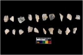| Description / विवरण | There are n 20 flakes; there are multidirectional irregular scar pattern on them; made of short flakes, few are blades, one has pen pointed edge and few have tapering edges. |