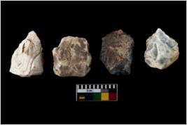 | Description / विवरण | There are n 4 of utilized worked cores and show irregular scar pattern on both dorsal and ventral side. One has a broken tip. |